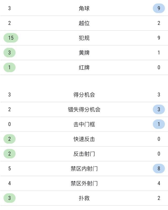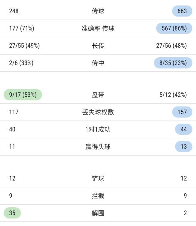 双方全场技术统计