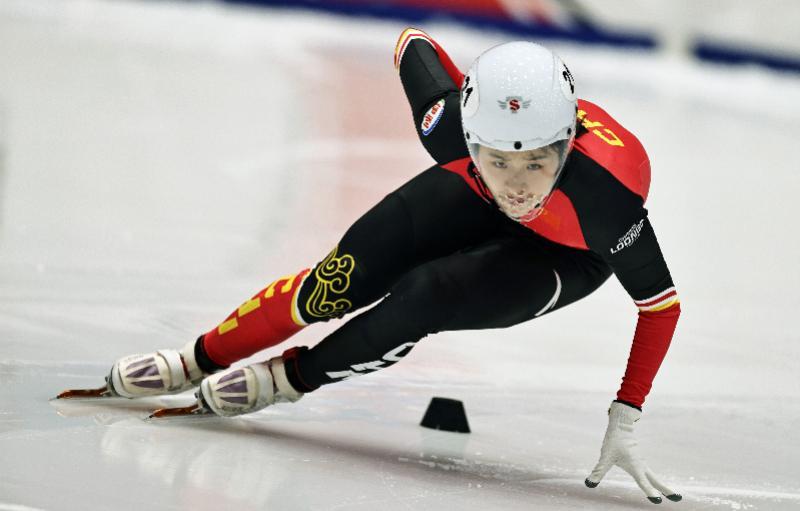 在第九届亚冬会速度滑冰男子1000米比赛中,中国选手宁忠岩夺得冠军。 新华社记者 王楷焱 摄